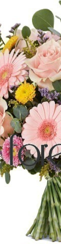 Inspired by wild-growing blooms you might find while walking in the English countryside, our Country Stroll Bouquet remains a popular choice for Mother's Day and birthday celebrations. You'll find pink roses, pink gerbera, pink and yellow mini chrysanthemums, and yellow Limonium beautifully hand-tied in a vase or bouquet wrapping.