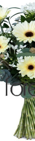 Brighten someone's day with the Cream Daisy Delight Handtied Bouquet. A stunning floral arrangement with 6 cream gerberas, delicate white burvardia, and evergreen eucalyptus, it is fragrant without being overpowering, making it the perfect flower gift. If you want to say Thank You, I'm Sorry, or simply, I'm Thinking of You, this could be the bouquet you have been looking for.