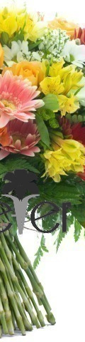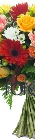 Embracing all the colours of Mother Nature's Garden, the Mixed Magic arrangement never fails to delight. It includes 4 bright red gerberas, 3 pale pink gerbera, 2 yellow alstroemeria, 3 vibrant orange roses, white chrysanthemum sprays and a selection of foliage and greenery to showcase the colour intensity of the handtied blooms.
