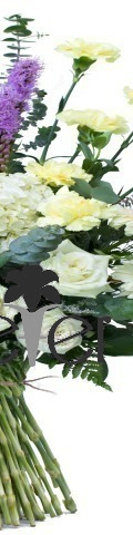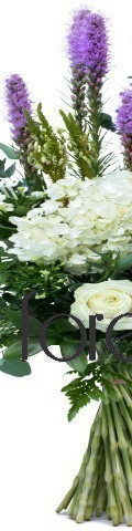 If you cannot find the right words to express the way you rare feeling, let the More Than Words Bouquet do all the taking for you. A stunning display of white and purple blooms, it includes 3 white roses, 6 cream carnations, 2 white gerberas, 1 white hydrangea, and 4 purple liatris. A sprinkling of lush foliage adds the finishing touch.