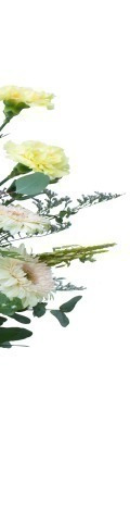 3 White Roses, 6 Cream Carnations, 2 White Gerbera, 1 White Hydrangea, 4 liatris