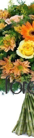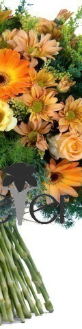 The Orange Extravaganza arrangement is bursting with floral favourites. 5 premium orange and yellow roses, 4 bright orange gerberas, apricot orange chrysanthemums, and sprays of solidago combine to create a zesty floral arrangement full of natural fragrance. Perfect for any occasion, or no occasion at all.