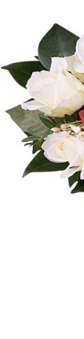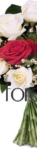 This exceptionally crafted floral arrangement is the ideal gift to send to your perfect partner on Valentine's Day or any day of the year. Deep green leaves encircle a dozen red and white roses. Simply stunning.