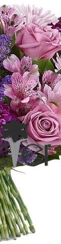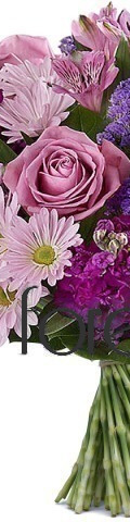 6 x Pink Roses, Purple Chrystanthemums, Pink Alstroemeria, Purple Bouvardia, Purple Statice