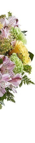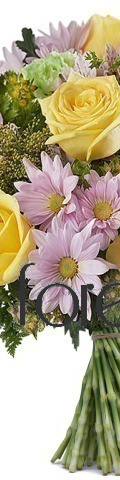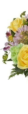 With its sunny disposition, the Springtime Surprise Bouquet is the perfect way to say Thank-You, Get Well Soon, Good Luck, or simply, I Love You. A fragrant display of colourful blooms, it includes 7 yellow roses, 4 lime green carnations, purple chrysanthemums, yellow Limonium, and seasonal greenery. Something a little bit different for Valentine's Day, this enchanting flower arrangement guarantees to impress.