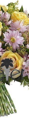 7 x Yellow Roses, 4 x Lime Green Carnations, Purple Chrysanthemums, Yellow Limonium