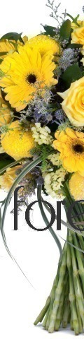Our Sunshine Yellow arrangement is a symbol of friendship, new beginnings and happiness. A gift for any occasion, it includes 4 bright yellow gerbera daisies, 3 yellow roses, 5 yellow pompoms, blue and white statice, limonium, and a medley of mixed foliage. Designed to bring warmth and love into any room, it is a stunning floral arrangement.