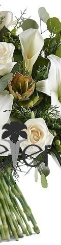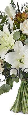 As a symbol of purity, elegance, innocence, and everlasting love, white flowers are the perfect gift for almost any occasion. In the White Satin Bouquet, you'll find a stunning arrangement for silky white blooms including 5 white lilies, 3 white calla lilies, and 5 velvety white roses. Green hypericum berries and minty eucalyptus add the finishing touch to this timeless bouquet. A lovely gift for new baby arrivals, wedding anniversaries, and Mother's Day, it never fails to delight.